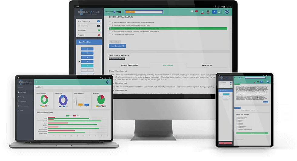 Ace Qbank is a comprehensive learning resource for candidates of all levels. Qbank provides explanations for all answers; explanations are detailed but concise and easy to understand.