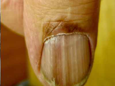01 Nov Brown spot on the nail By wasif dev0 Comments A 72-year-old hardware store employee came in for a usual physical examination. His vital signs were normal, and he had no fevers, chills, night sweats, or unintended weight loss. His sole concern was a non-tender lesion on his fingernail that he had discovered three months before. He had not had any recent trauma. A longitudinal melanonychia on the radial edge of the left thumbnail was discovered during physical examination. Over the proximal nail fold, there was brown-black pigmentation. A V-shaped nick in the nail plate was evident at the distal end of the streak, and the pigment tapered distally. Which of the following is the most likely diagnosis, Based on the patient’s medical history and physical examination? Nail matrix hematoma Subungual verruca vulgaris Acral melanoma Pseudomonas aeruginosa infection Melanonychia striata None Time's up Share article:TwitterFacebookLinkedin