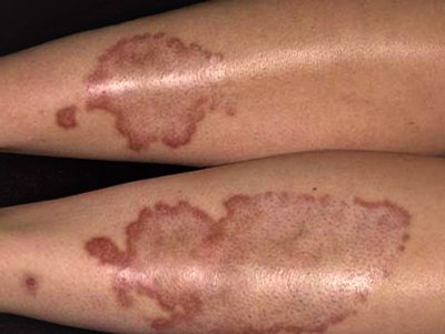 01 Nov Slowly enlarging lesions on the legs By wasif dev0 Comments A 51-year-old librarian with a history of type 2 diabetes mellitus comes to the office complaining of asymptomatic, slowly enlarging, brownish plaques on the anterior surfaces of both lower legs. These lesions had appeared during the past three years gradually, and she applied different creams over the lesions but all had proven ineffective in treating these lesions. Temperature is 37.5, BMI 32 kg/m2, and her blood pressure is 138/85 mmHg. Her physical examination reveals reddish-brown plaques with sunken shining centres, along with dilated deep subcutaneous veins visible through her atrophic skin. On the affected skin, small ulcerations were just starting to form. There were no signs of cellulitis nor evidence of peripheral neuropathy and peripheral pulses were normal. Given her medical history and the physical appearance of the lesions, Which one of the following is the most likely diagnosis? Pretibial myxedema Diabetic dermopathy Granuloma annulare Erythema nodosum Necrobiosis lipoidica None Time's up Share article:TwitterFacebookLinkedin